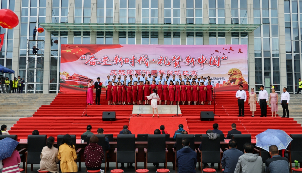 比赛围绕“奋进新时代、礼赞新中国”庆祝新中国成立70周年主题展开。学院百人合唱团合唱的《我和我的祖国》拉开了歌咏比赛帷幕。整个大合唱比赛现场气势恢宏、雄壮浩荡、激情澎湃、催人奋进,赢得现场观众阵阵掌声。