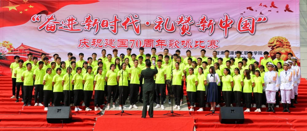 9月24日下午,我院举行“奋进新时代、礼赞新中国”庆祝中华人民共和国成立70周年歌咏比赛。学院百人合唱团和各系合唱队共1200余人参加了比赛。