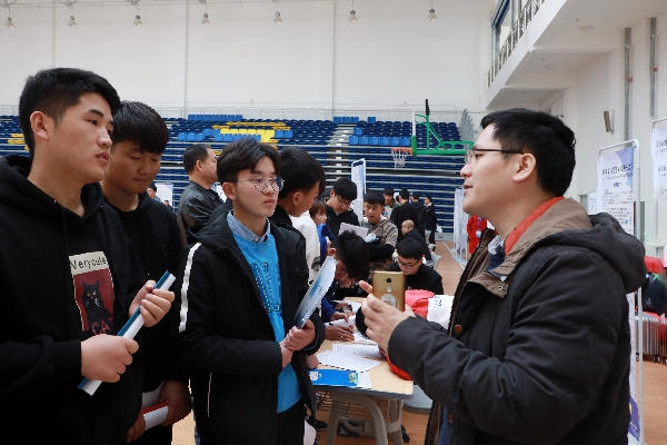 院党委书记蒲金龙发表热情洋溢的致辞。他首先代表学院全体师生向前来参加今天两个会议的兄弟学校、企业界朋友表示衷心的感谢和热烈的欢迎!向即将通过应聘走上工作岗位的2019届全体毕业生表达了诚挚的祝福和殷切希望。他说:随着中国经济向纵深发展,教育已经形成了“学生—学校—企业—社会—家庭”为紧密一体的教育命运共同体,学生可以自主选择心仪的学校和专业;中高职院校相互对接,提供适合学生个性发展和职业发展的中高级职业教育;学生毕业前,学校考察选择优质企业来校招聘,为学生未来职业生涯发展打好基础;企业和学生通过招聘会实现双向选择;学生通过企业成长为社会的一员,服务企业、贡献社会、反哺家庭。这种各尽其能、各美其美的教育共同体,已经或者必将成为我国经济发展、人才培养的新模式、新动力。im体育过去和今天的发展,离不开兄弟院校以及企业界朋友的鼎力相助,你们的信任和支持是激励我们办好学校、培养好学生的原动力。希望在座的兄弟院校一如既往地支持我院发展,鼓励更多的学生来我院进一步接受职业教育,为他们未来的成长积蓄更多能量。也希望今天来的企业能够精心呵护和培养被录用的学生,给他们更多的人文关怀、潜心打磨,让他们尽快融入到企业中,在工作实践中锻炼成长为符合企业文化需求、服务于国家经济建设的合格人才。